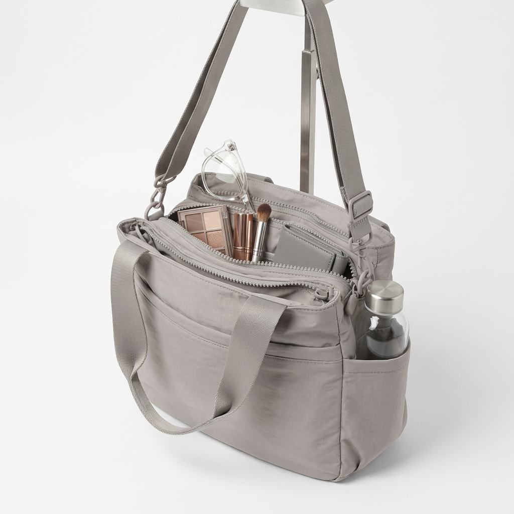 Die kompakte Form sorgt für eine elegante Silhouette, während mehrere Fächer eine übersichtliche Organisation ermöglichen.